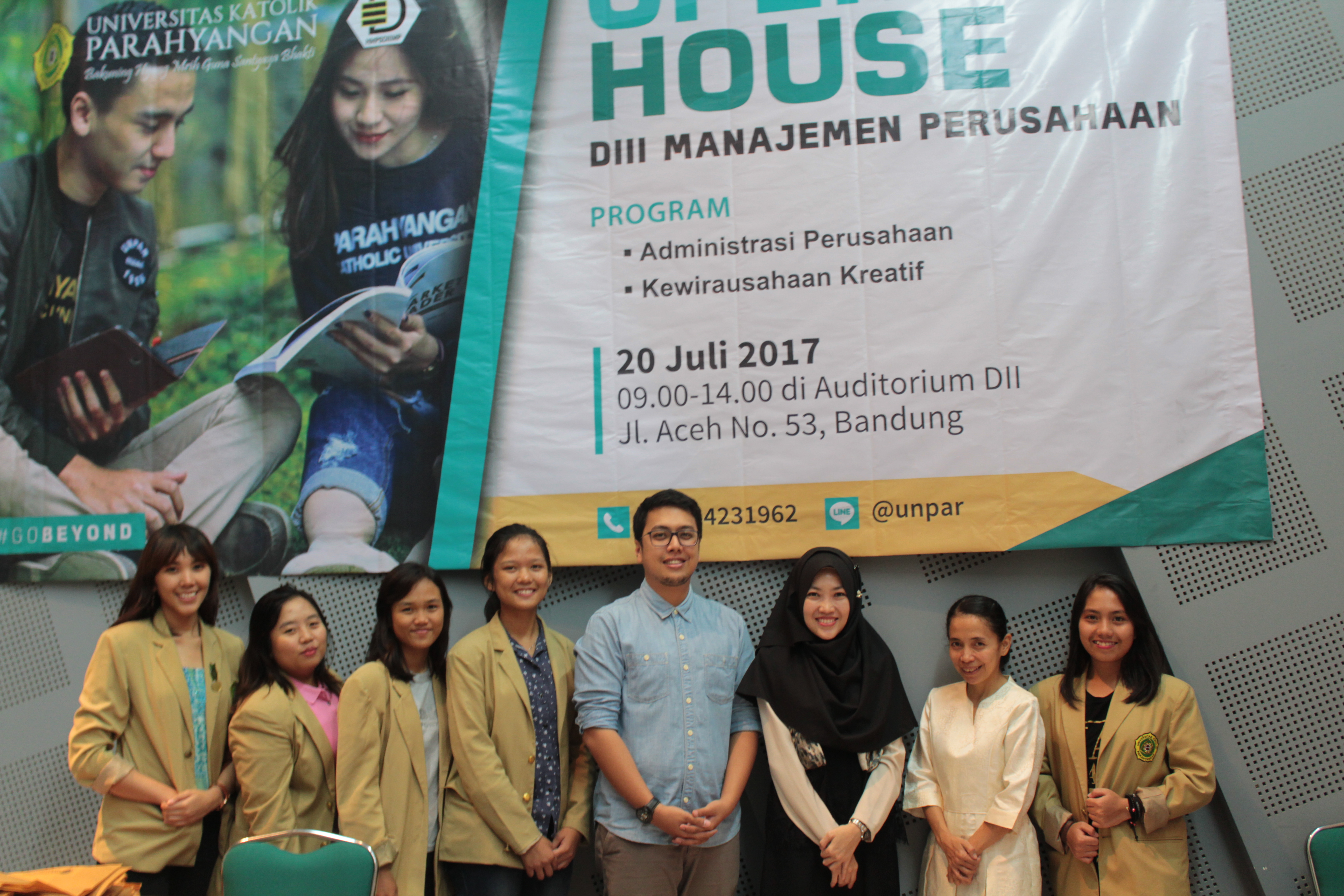 Dalam rangka memperkenalkan lebih dekat mengenai Program Studi diploma III Manajemen Perusahaan kepada masyarakat luas, maka pada hari kamis. tanggal 20 juli 2017 diselenggarakan kegiatan Open House Diploma III Manajemen Perusahaan Universitas Katolik Parahyangan.