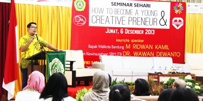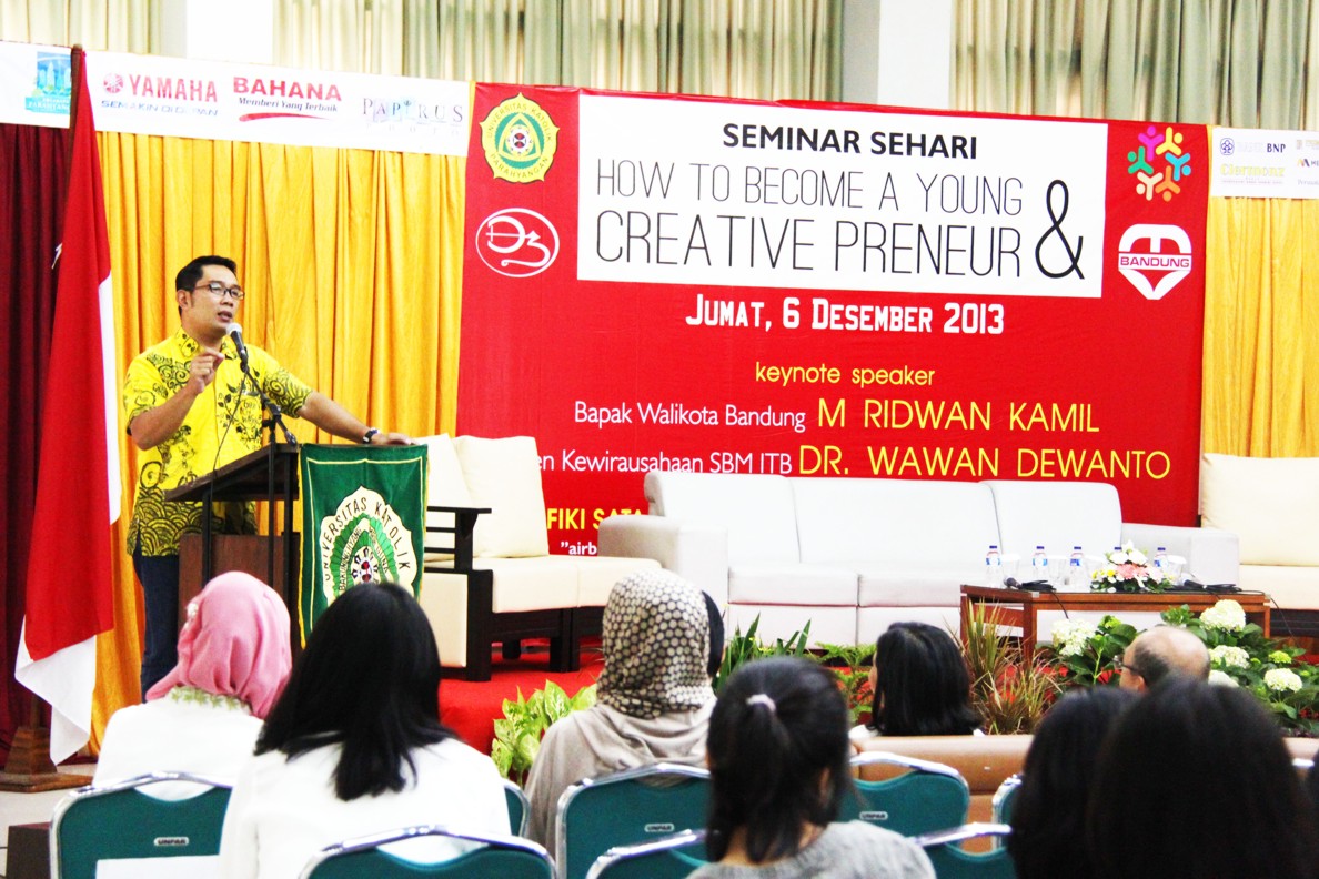 Dengan melihat potensi yang besar dalam industri kreatif di Bandung, Bertempat di gedung Aula Pasca Sarjana UNPAR, pada tanggal 6 Desember 2013, Program Studi D III Manajemen Perusahaan UNPAR melaksanakan Seminar yang mengambil tema “How To Become A Young & Creative Preneur”. Acara tersebut dibuka oleh Ida Nuraida, SE, MM selaku ketua Program Studi D III Manajemen Perusahaan UNPAR dilanjutkan dengan sambutan-sambutan dari Dr. Elizabeth Tiur Manurung, M.Si.,Ak, selaku Dekan Fakultas Ekonomi UNPAR, Prof. Robertus Wahyudi Triweko, Ph.D. selaku Rektor Universitas Katolik Parahyangan dan kemudian dilanjutkan penyampaian Keynote Speech oleh Walikota Bandung, Ridwal Kamil.